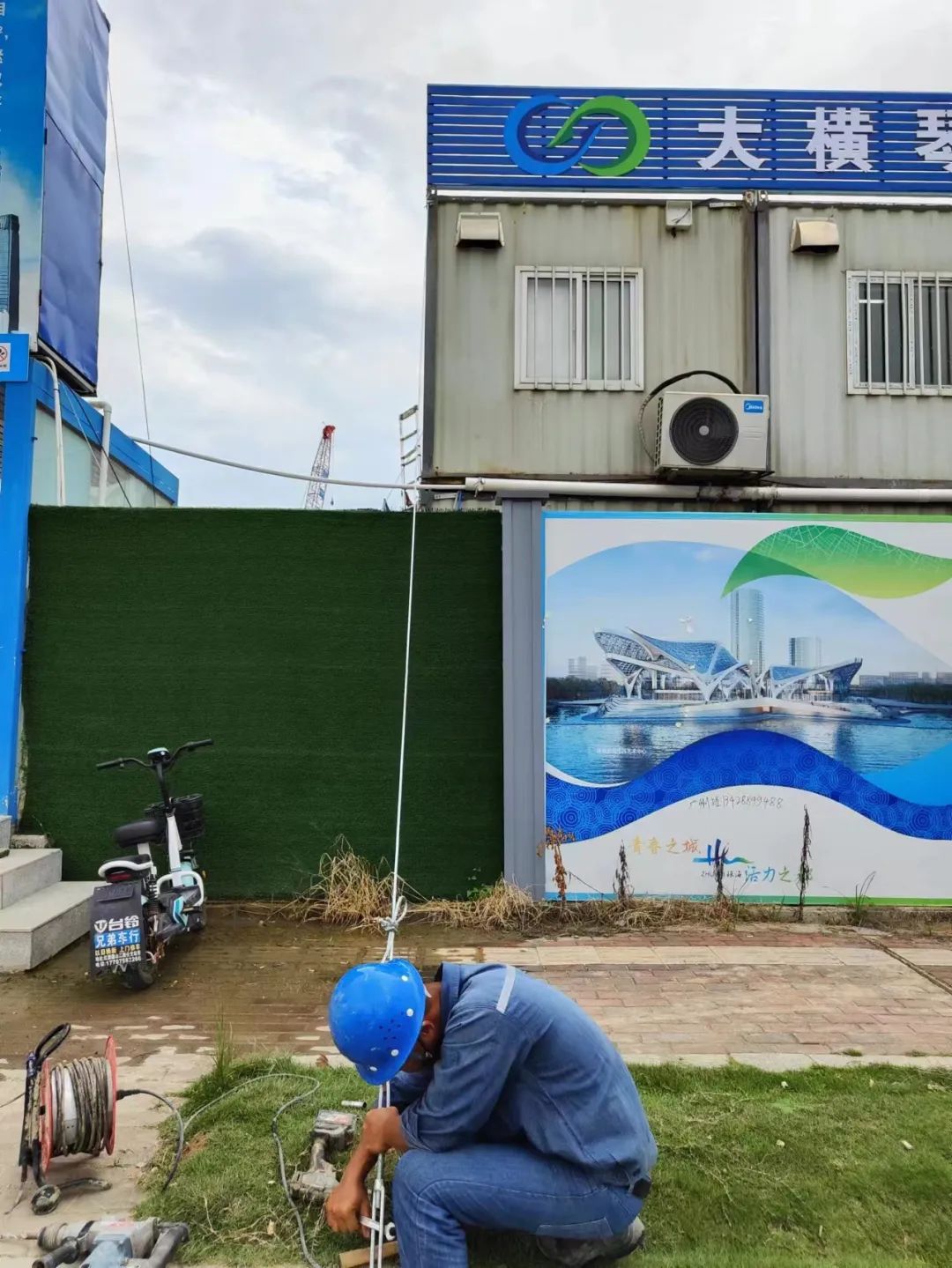 在臺風來臨前,大橫琴置業公司組織了17支共550人的應急搶險救援隊伍,投入挖機40臺、水泵140臺、沙袋1090個等防汛防臺應急物資嚴陣待命,組織人員24小時值班,并在項目現場設立告示牌,防止次生災害發生。