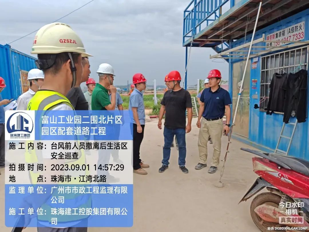 會后,集團副總經理、三防總指揮祝杰帶隊對橫琴口岸、長隆宿舍安置點、環島西路二期、天湖酒店等重點場所,建筑工地、轉移安置點等重點區域進行檢查。檢查組要求各單位要再對在建工地塔吊、深基坑、高支模、工棚、臨時用電等隱患及加固情況進行全面的拉網式排查,及時采取措施,補足短板,確保防臺風措施落實到位,全覆蓋,零死角,保證人員設備安全。