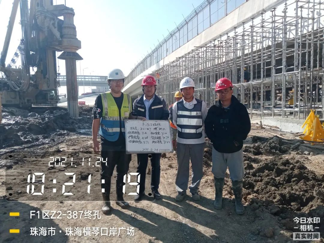 九是質量安全。成立質量管理小組,制定質量管理措施,按照公司安全管理規定,落實責任到人、層層把關,定期開展安全檢查,兼顧突擊檢查,避免安全隱患。如對項目樁基礎等重要工序,結合工程工序相關查驗標準,全過程記錄每條樁的超前鉆、鋼護筒、樁孔重要參數,并對不同數據互相比對,確保每道工序按圖施工。2021年10月起,指揮部成員輪流值班,跟進每一條樁基終孔驗收工作,并拍照留底。據統計,驗樁共安排輪值共113次。