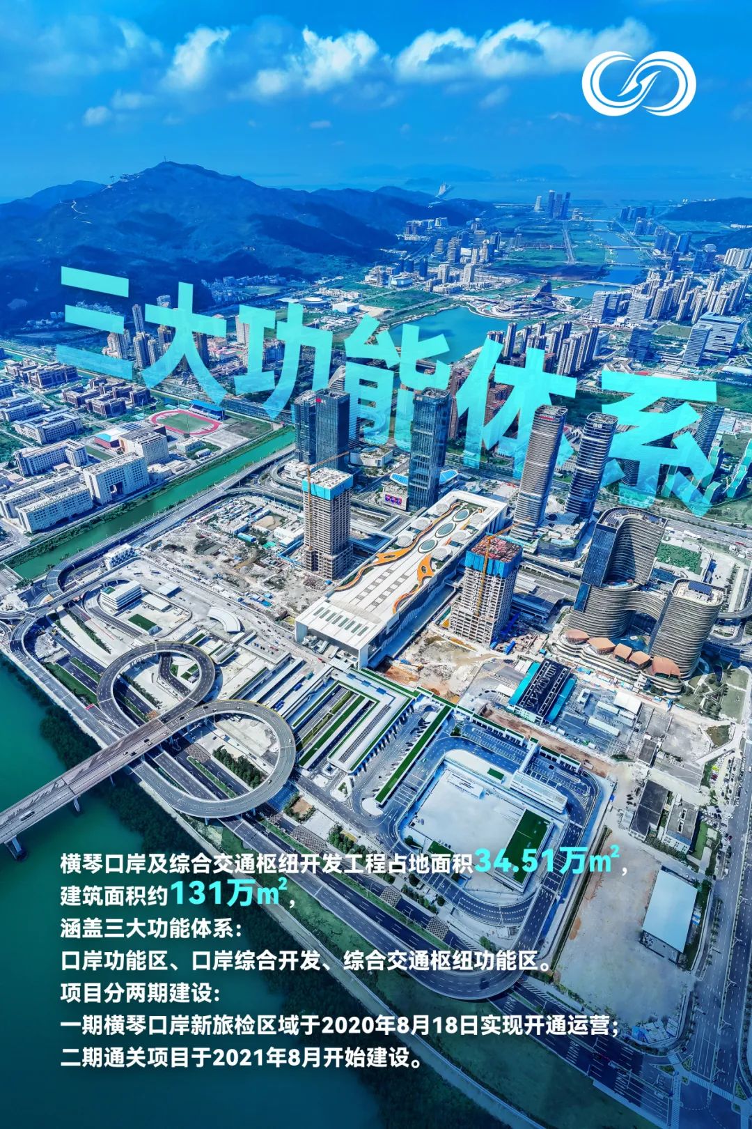 該工程分兩期建設,一期橫琴口岸新旅檢區域已于2020年8月18日實現開通運營;二期工程通關項目于2021年8月25日啟動建設,包括出境查驗場、入境查驗場、蓮花大橋改造工程。