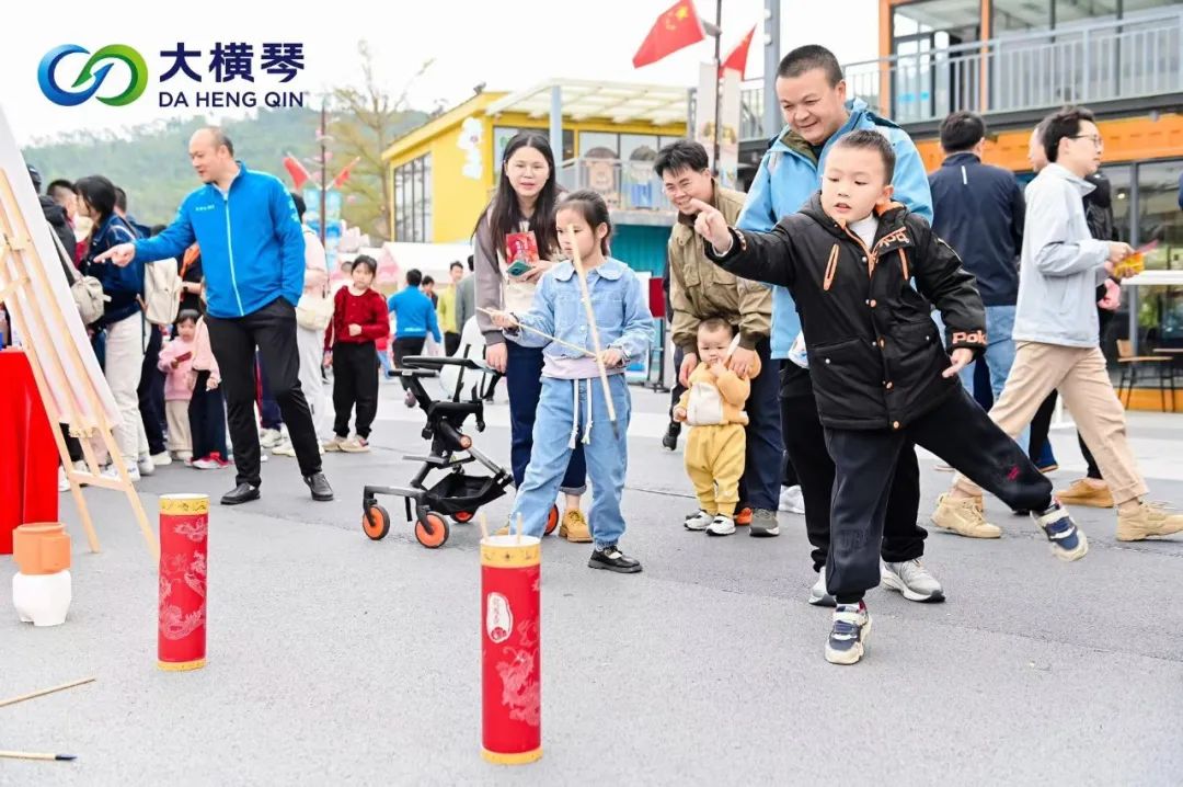 喧天的鑼鼓,精彩的舞龍舞獅,豐富的小游戲,趣味十足的定向集章,吸引了眾多游客駐足打卡。活動(dòng)中,有不少來(lái)自澳門的游客手拿集章卡,在游戲區(qū)進(jìn)行游玩和探索,特別是在猜燈謎游戲中,許多孩子組團(tuán)猜謎,和家長(zhǎng)們一起開(kāi)動(dòng)腦筋,熱情討論,處處歡聲笑語(yǔ)。