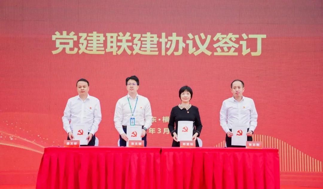 儀式上,大橫琴置業(yè)黨總支書記、董事長唐文彬宣讀了黨建聯(lián)建方案,中共橫琴粵澳深度合作區(qū)行政事務(wù)局支部委員會、中共橫琴粵澳深度合作區(qū)城市規(guī)劃和建設(shè)局總支部委員會、中共珠海大橫琴置業(yè)有限公司總支部委員會、中共中建八局天沐琴臺項(xiàng)目支部委員會簽訂了黨建聯(lián)建協(xié)議書并為黨建品牌揭牌。